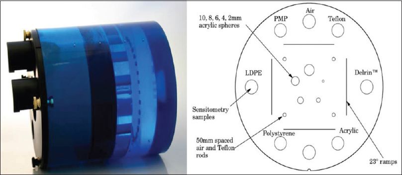 不同的模块组成了Catphan®模体,这些模块尚可适用于连续20cm空间。为了在Catphan®424中使用水容器,所有Catphan®组件都是由Solid-cast材料构成。Solid-cast结构可以降低材料的吸水性和水浴模体相关的露水问题。